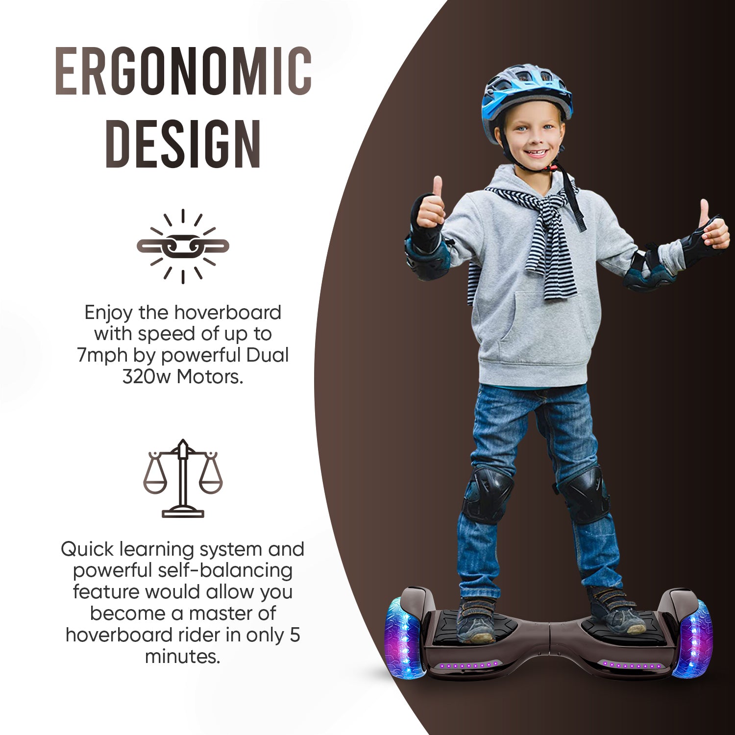 ✅SMART BLUETOOTH HOVERBOARD AND LED LIGHTS: Equipped with entertainment facilities like built in music speaker, conveniently connects to smartphone. Glaring LED lights helping to surf in dark while making you look cool. Hoverboard with Bluetooth to make it extra fun!